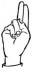 На ћирилици написано РАДНА ВАСИЋ састоји се из 10 слова [?]. Исписано ћириличном једноручном азбуком за глувонеме: